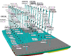 ????實現(xiàn)這一突破的是黃埔文沖為新加坡太古公司建造的2750箱集裝箱船2號船H5531。通過全站儀采集艙內(nèi)導架數(shù)據(jù),利用計算機將導架間數(shù)據(jù)模型與集裝箱數(shù)據(jù)模型進行對比分析,從而實現(xiàn)模擬試箱。通過對H5531船全船導架數(shù)字化模擬,并將其與傳統(tǒng)實體試箱進行對比,狀態(tài)完全吻合。