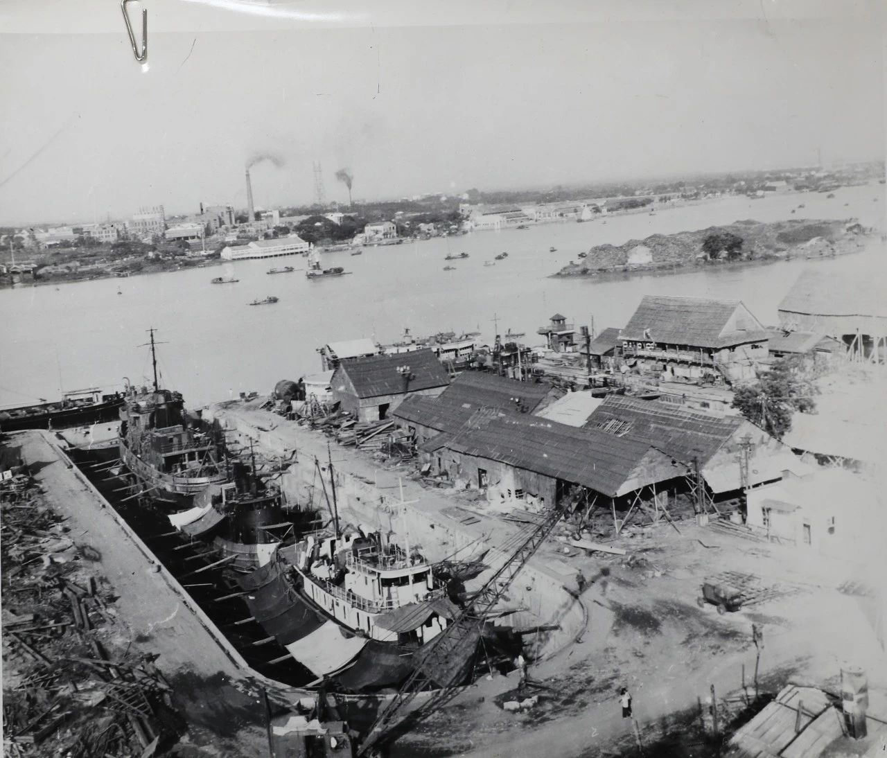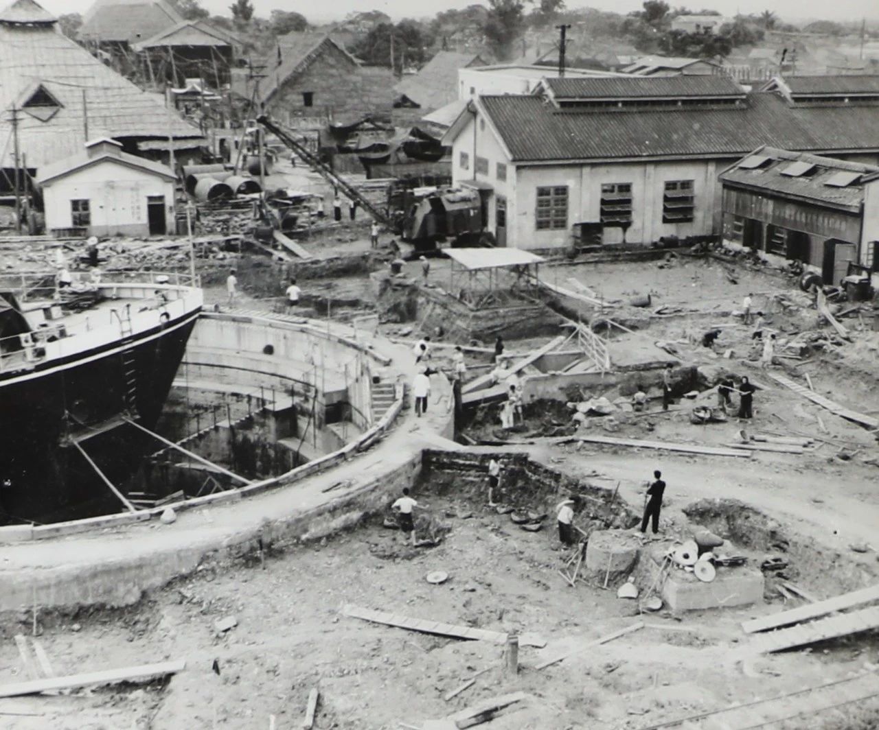 1958年廣州,1958年,廣船國際的前身廣州造船廠的造船塢,圖中的履帶式起重機是廣州造船廠主要的起重設(shè)備。