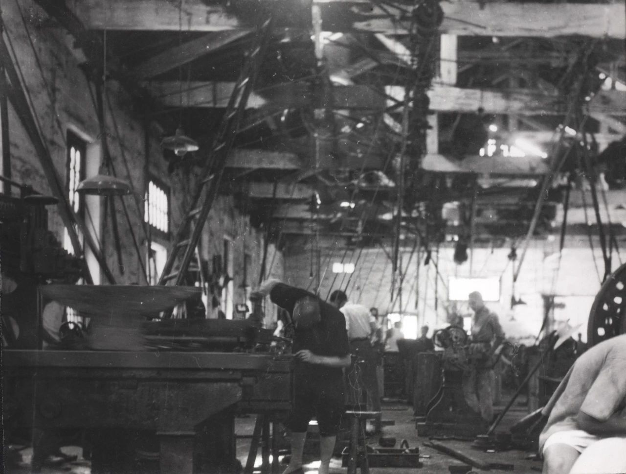 1934年武漢,解放前,沒有產(chǎn)線的概念,全部利用張之洞早年開辦的紡紗局廠房,撥用了其他廠的舊機床設(shè)備,進行手工作坊式生產(chǎn)。