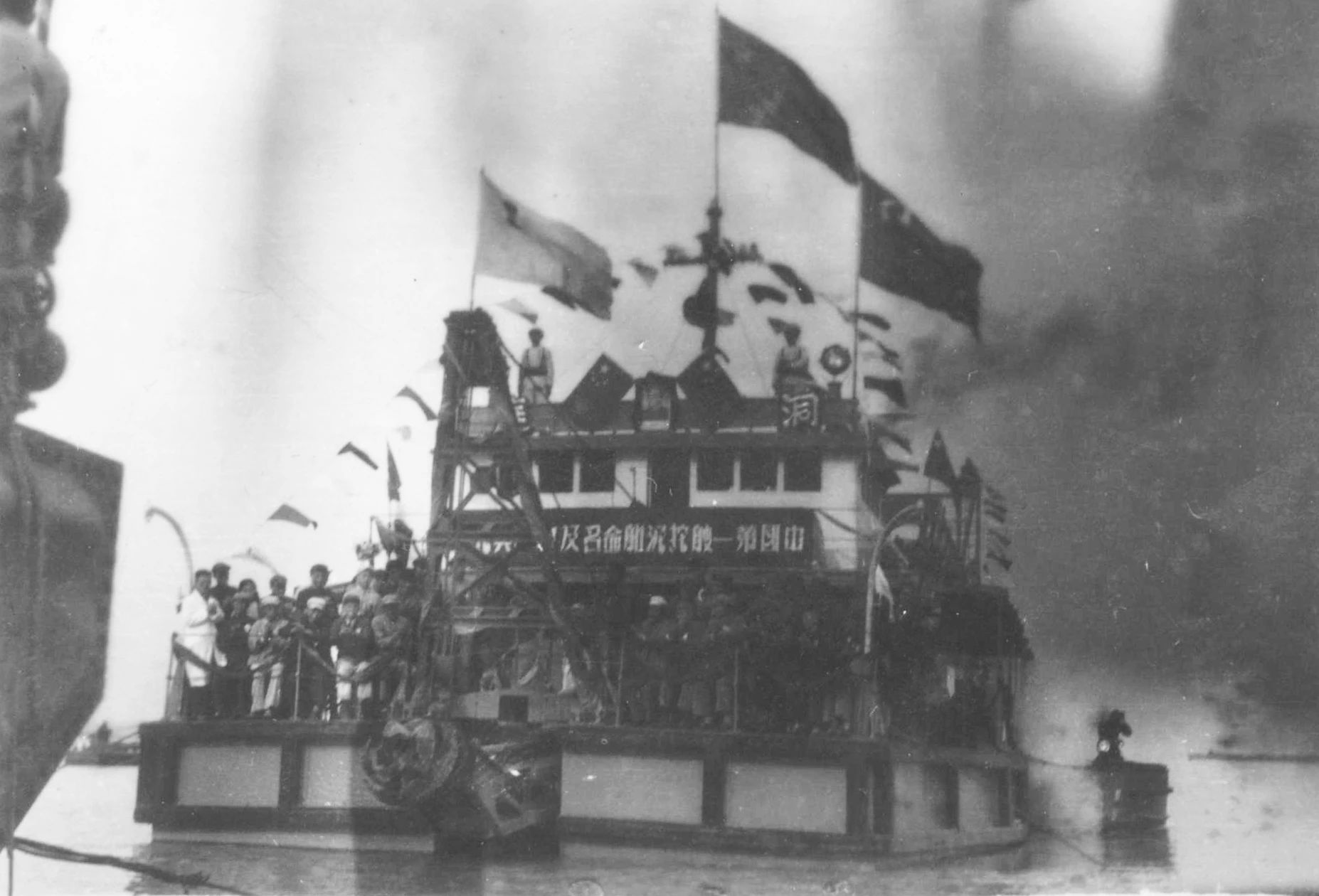 1949年7月上海,1949年7月23日,江南造船所舉行“職工慶功大會”。上海市市長兼軍管會主任陳毅、副市長曾山、華東海軍司令員張愛萍、上海市總工會主席劉長勝等出席了大會。會上總結(jié)修復(fù)廠房設(shè)備的經(jīng)驗,宣布恢復(fù)生產(chǎn)表彰有功人員。全所有 134人被評為一、二、三等功臣受到表彰。