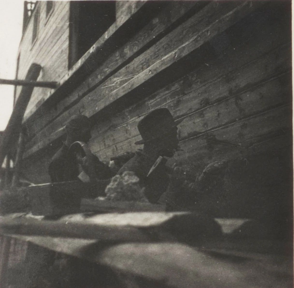 1934年武漢,上世紀30年代,武昌造船成立之初,工人們以手工作業(yè)“敲敲打打”形式開展修造船業(yè)務(wù)。修造的船只大多為100~300噸、鋼肋骨與木殼結(jié)構(gòu),僅有少量是鋼鉚接船體。建造的船只只能在長江上航行跑跑運輸。為了生存和救國,船廠還建造一些農(nóng)用機械器具、槍支,以輔助民生、支援抗日。