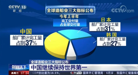全球權(quán)威航運造船機構(gòu)公布的最新數(shù)據(jù)顯示,今年上半年,全球造船業(yè)三大指標,中國再次領(lǐng)先,繼續(xù)保持世界第一的紀錄。