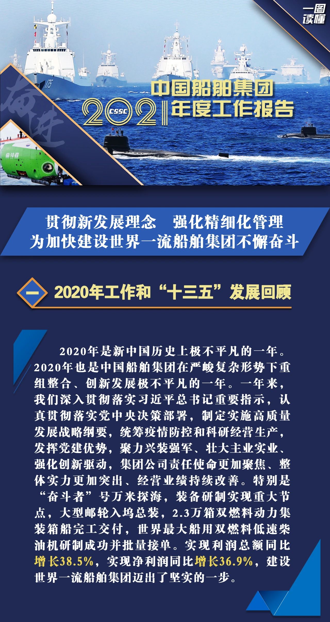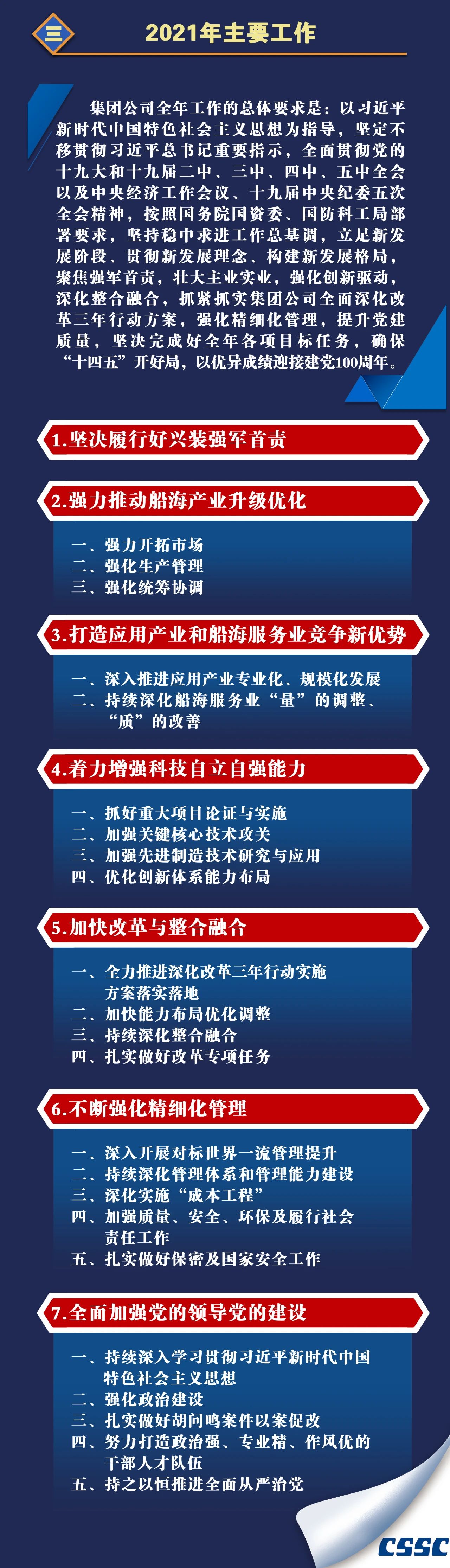 1月27日,在中國(guó)船舶集團(tuán)有限公司2021年度工作會(huì)議上,中國(guó)船舶集團(tuán)黨組書(shū)記、董事長(zhǎng)雷凡培作了題為《貫徹新發(fā)展理念 強(qiáng)化精細(xì)化管理 為加快建設(shè)世界一流船舶集團(tuán)不懈奮斗》的工作報(bào)告。
