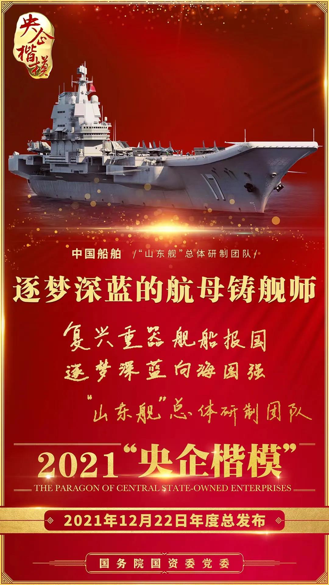 12月22日,國務(wù)院國資委黨委舉行2021年第二批“央企楷?!卑l(fā)布暨年度總發(fā)布儀式,中國船舶“山東艦”總體研制團(tuán)隊(duì)榮獲2021年“央企楷模”榮譽(yù)稱號(hào)。繼“奮斗者”號(hào)萬米載人潛水器研發(fā)團(tuán)隊(duì)獲評(píng)2020年“央企楷?!睒s譽(yù)稱號(hào)后,中國船舶集團(tuán)再獲此殊榮。