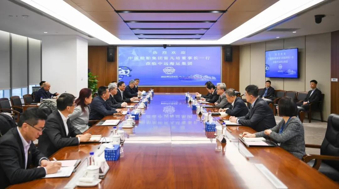 2月9日,中國船舶集團有限公司黨組書記、董事長雷凡培,黨組副書記、總經(jīng)理楊金成一行赴中遠海運大廈拜會中國遠洋海運集團有限公司黨組書記、董事長萬敏,黨組副書記、總經(jīng)理付剛峰。雙方互賀壬寅虎年新春,圍繞深入貫徹落實國家重大戰(zhàn)略,就進一步加強綠色燃料技術(shù)研發(fā)應(yīng)用、船舶與航運業(yè)全產(chǎn)業(yè)鏈構(gòu)建等領(lǐng)域的交流合作,攜手推動我國航運業(yè)和造船業(yè)高質(zhì)量發(fā)展進行了深入探討并達成廣泛共識。中國船舶集團黨組成員、副總經(jīng)理孫偉、盛紀綱,中遠海運集團黨組成員、副總經(jīng)理、總會計師孫云飛參加會談。