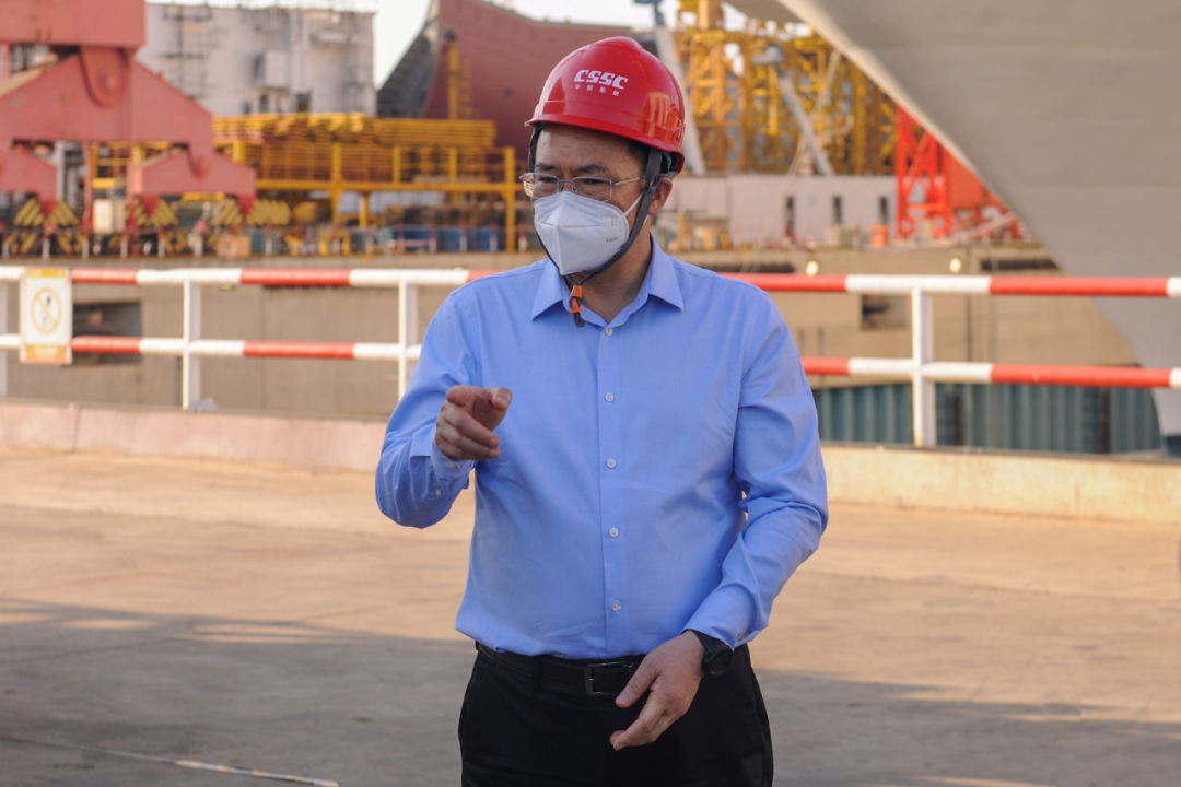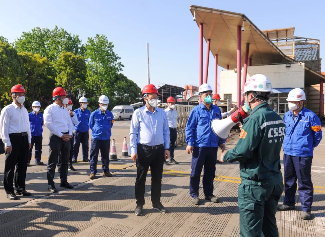 5月5日,中國船舶集團有限公司黨組副書記、總經(jīng)理楊金成到集團公司旗下上海外高橋造船有限公司調(diào)研疫情防控和復(fù)工復(fù)產(chǎn)工作。中國船舶集團黨組成員、副總經(jīng)理孫偉參加調(diào)研。