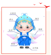 設計說明:該作品取自《山海經》中飛魚——文瑤。相傳文瑤魚出自泰器山,此魚長著魚的身體,鳥的翅膀,飛翔東天門與西天門之上,遨游在東海和西海之間。文瑤魚乃是吉祥如意的象征,相傳其所到之處風調雨順、五谷豐登,船寶設計中加入云紋,如意紋,錢紋寓意中國造船業(yè),吉祥如意,鵬程萬里。海寶以Q版造型生動展現(xiàn)了其活潑可愛、積極熱情服務大眾的美好形象,以文瑤魚的形式化身造船工匠,體現(xiàn)我們造船人求真務實、攻堅克難、開拓創(chuàng)新、拼搏奉獻的精神力量,積極營造正能量。