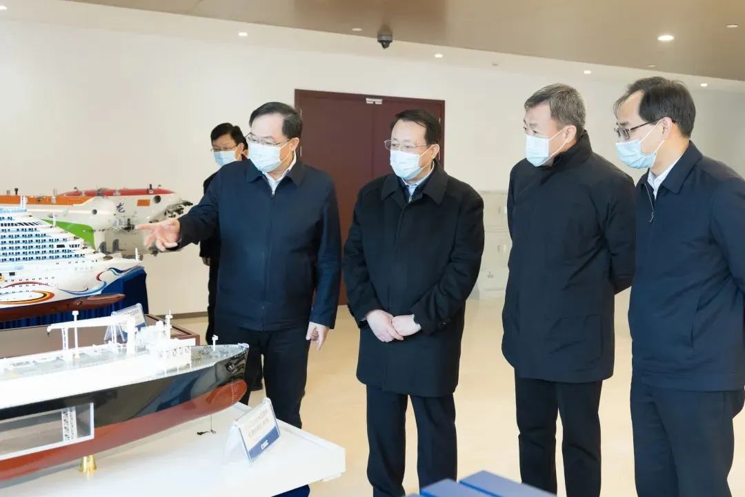 中國(guó)船舶集團(tuán)總部于2021年12月遷駐上海,去年經(jīng)營(yíng)業(yè)績(jī)?cè)賱?chuàng)新高。在溫剛、楊金成的陪同下,龔正察看了中國(guó)船舶集團(tuán)重點(diǎn)船舶產(chǎn)品模型,深入了解中國(guó)船舶集團(tuán)深化科技創(chuàng)新、實(shí)施重大項(xiàng)目,對(duì)標(biāo)國(guó)際先進(jìn)、夯實(shí)技術(shù)基礎(chǔ)等方面情況。