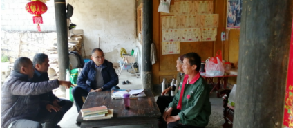 ▲在鄉(xiāng)親家中走訪的杜海榮(中)