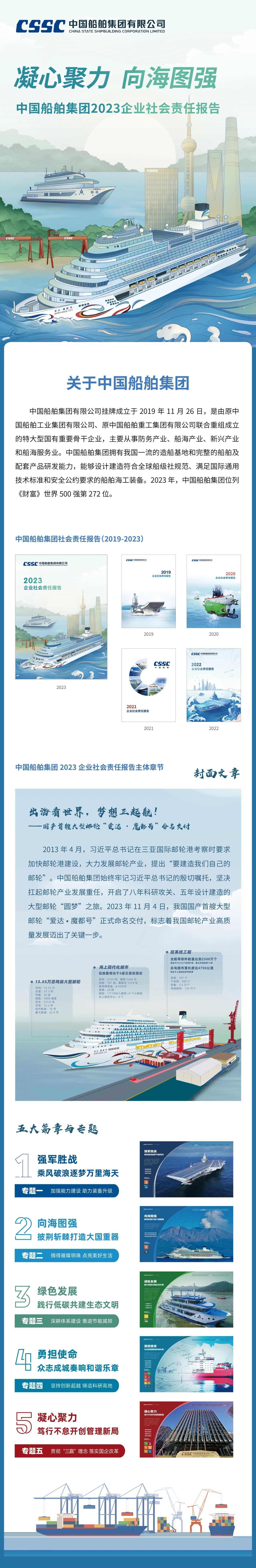 近日,中國船舶集團(tuán)有限公司發(fā)布了《2023企業(yè)社會責(zé)任報告》(以下簡稱《報告》)。本報告是中國船舶集團(tuán)正式發(fā)布的第五份企業(yè)社會責(zé)任報告。
