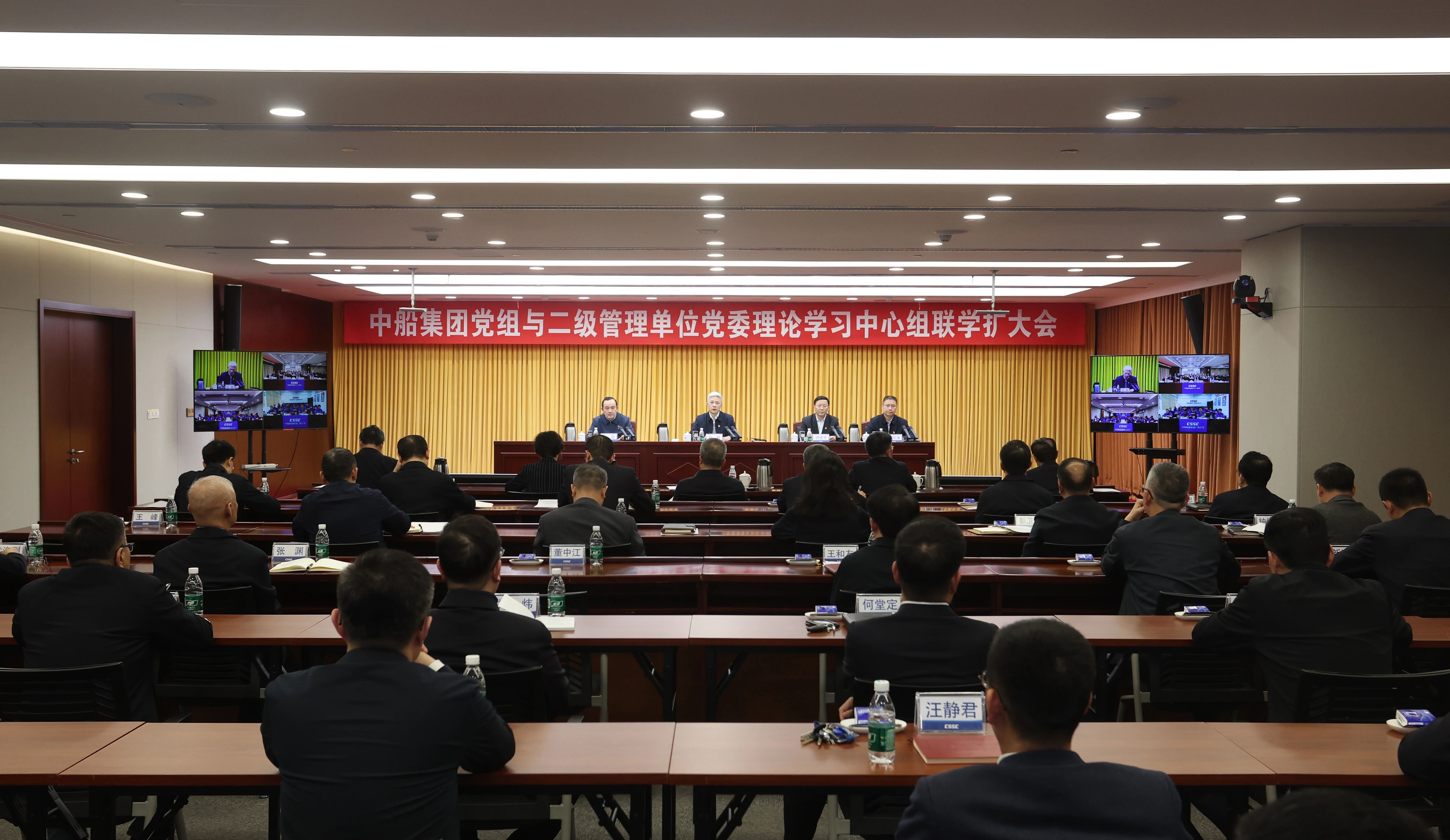 3月14日,中國(guó)船舶集團(tuán)有限公司召開(kāi)黨組與二級(jí)管理單位黨委理論學(xué)習(xí)中心組聯(lián)學(xué)擴(kuò)大會(huì),傳達(dá)學(xué)習(xí)全國(guó)兩會(huì)精神。中船集團(tuán)黨組書(shū)記、董事長(zhǎng)徐鵬主持會(huì)議并講話(huà),集團(tuán)公司黨組理論學(xué)習(xí)中心組成員參會(huì)。