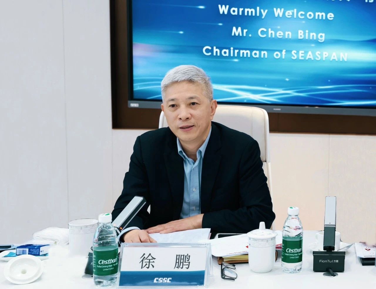 徐鵬對陳兵一行的來訪表示歡迎,并感謝Seaspan公司對中船集團(tuán)的長期信任與支持。徐鵬表示,中船集團(tuán)將持續(xù)提升自身綜合能力,努力為客戶提供更優(yōu)質(zhì)的產(chǎn)品和服務(wù)。Seaspan公司是全球最大的獨(dú)立集裝箱船租賃船東公司,與中船集團(tuán)在長期合作中結(jié)下了深厚友誼。未來,希望雙方建立常態(tài)化溝通交流機(jī)制,在船舶建造與升級改造、國際船海市場拓展、船舶全生命周期運(yùn)維、綠色能源開發(fā)等方面持續(xù)深化進(jìn)一步合作,共同為行業(yè)持續(xù)健康發(fā)展作出應(yīng)有貢獻(xiàn)。
