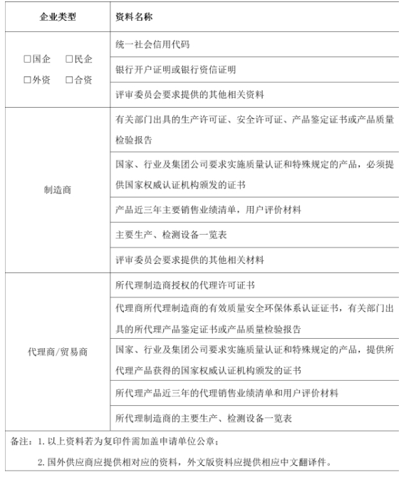 4.對于提供審核資料弄虛作假、被國家相關(guān)部門、同行業(yè)央企納入黑名單或列為不誠信人的企業(yè)及企業(yè)法人不予準入。