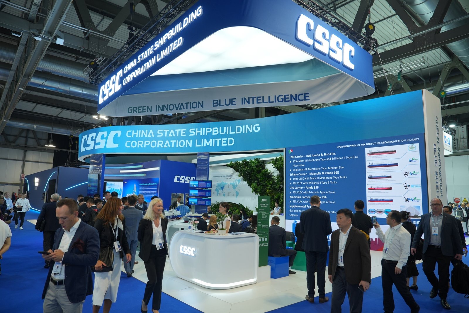 此次展會(huì),中船集團(tuán)緊密圍繞“清潔能源、綠色發(fā)展”參展主題,科學(xué)高效利用展臺(tái)展示空間,設(shè)置集團(tuán)總體區(qū)、海上LNG產(chǎn)業(yè)鏈裝備區(qū)、綠色能源開發(fā)儲(chǔ)運(yùn)裝備區(qū)、零碳低碳技術(shù)區(qū)、全球營(yíng)銷服務(wù)網(wǎng)絡(luò)區(qū),系列化、場(chǎng)景化展示中船集團(tuán)高水平海上LNG產(chǎn)業(yè)鏈以及綠色清潔能源領(lǐng)域創(chuàng)新技術(shù)產(chǎn)品和標(biāo)志性成果,包括“夢(mèng)想”號(hào)大洋鉆探船、27.1萬立方米超大型液化天然氣運(yùn)輸船、9.9萬立方米超大型乙烷乙烯運(yùn)輸船、7500立方米液態(tài)二氧化碳運(yùn)輸船、集裝箱式電解水制氫設(shè)備等,充分彰顯中船集團(tuán)產(chǎn)業(yè)鏈綜合競(jìng)爭(zhēng)優(yōu)勢(shì)和綠色低碳創(chuàng)新能力,高效助力重點(diǎn)客戶關(guān)系鞏固及海外市場(chǎng)開發(fā),突出體現(xiàn)推動(dòng)綠色轉(zhuǎn)型發(fā)展的企業(yè)社會(huì)責(zé)任擔(dān)當(dāng)。