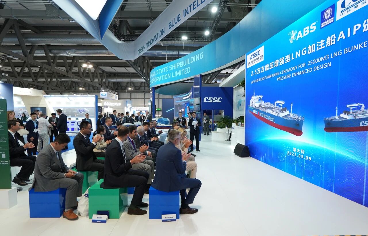 開展當(dāng)天,中船集團(tuán)舉辦江南造船五項(xiàng)革新船舶解決方案的AiP頒證儀式、滬東中華2.5萬立方米艙壓增強(qiáng)型LNG加注船AiP頒證儀式等專題活動(dòng),吸引了眾多國際船東、船級(jí)社、設(shè)備廠商等到場(chǎng)觀摩,與參展二級(jí)管理單位交流市場(chǎng)最新熱點(diǎn)并探討未來合作機(jī)遇。展會(huì)期間,中船集團(tuán)還將組織舉辦 “全球服務(wù)網(wǎng)絡(luò)”說明推介會(huì)等多場(chǎng)市場(chǎng)開發(fā)專題活動(dòng),精準(zhǔn)高效開展技術(shù)產(chǎn)品服務(wù)推介和品牌海外推廣。