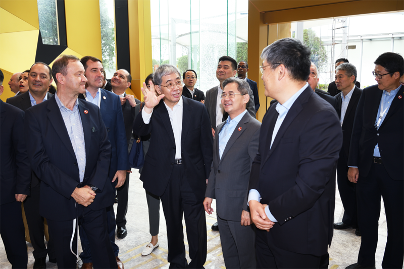 9月15日,在中國(guó)外交部副部長(zhǎng)鄭澤光、中國(guó)船舶集團(tuán)董事長(zhǎng)雷凡培的陪同下,以烏拉圭駐華大使盧格里斯為團(tuán)長(zhǎng)的拉美和加勒比地區(qū)18個(gè)國(guó)家駐華使節(jié)代表團(tuán)到中國(guó)船舶集團(tuán)旗下上海長(zhǎng)興造船基地參觀考察。中國(guó)船舶集團(tuán)副總經(jīng)理孫偉、姜仁鋒參加活動(dòng)。