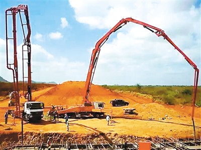 圖為三一重工的工程機(jī)械設(shè)備在肯尼亞蒙內(nèi)鐵路建設(shè)現(xiàn)場(chǎng)施工。
