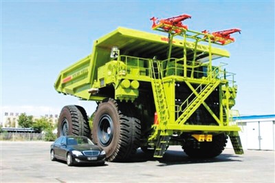 圖為內(nèi)蒙古北方重型汽車股份有限公司生產(chǎn)的NTE360電傳動(dòng)非公路礦用自卸車。