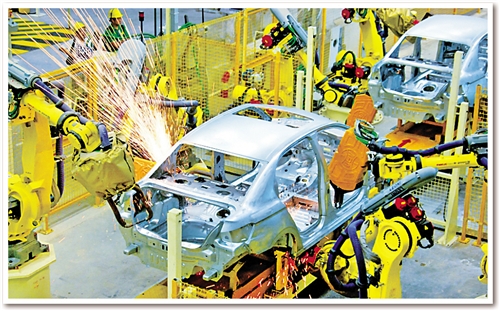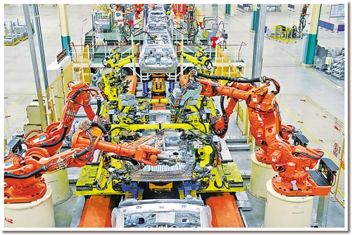 日前,記者在東風(fēng)汽車公司旗下神龍汽車公司成都工廠焊裝車間看到,占地面積約10個足球場的車間儼然就是一個“機(jī)器人王國”:442臺各種機(jī)器人都在忙碌著,所有點(diǎn)焊、弧焊、激光焊、螺柱焊、涂膠、包邊、鉚接、部件搬運(yùn)等“重活、累活”全部由機(jī)器人自動完成。焊裝分廠廠長孫繼勝介紹說,除442臺機(jī)器人外,車間還有另外一個“撒手锏”??六面體轉(zhuǎn)臺設(shè)備?!霸瓉砩a(chǎn)1個車型要建6條生產(chǎn)線,現(xiàn)在1條生產(chǎn)線就可以生產(chǎn)6種車型?!睂O繼勝說。