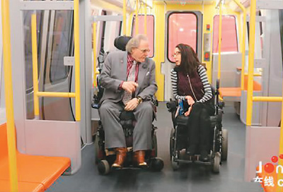 “現(xiàn)在,平生第一次,我不再需要別人幫我進(jìn)到車廂里了。這種獨(dú)立性對我來講至關(guān)重要?!瘪R薩諸塞州波士頓地鐵老乘客懷特先生坐著輪椅在車廂里溜達(dá)了一圈,對地鐵新車充滿期待。當(dāng)?shù)貢r間4月3日,在美國波士頓舉行的橙線地鐵模型車首次展出活動上,美國民眾感受了來自中國的地鐵車廂。更寬敞、美觀,設(shè)計更加人性化,讓美國民眾為之點(diǎn)贊。“車廂內(nèi)外側(cè)都有專門的按鈕,可以讓坐在輪椅里的人在上、下車的時候直接啟動車廂底部的專用輪椅車平板,通行完全無障礙。”懷特先生說。