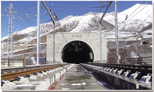 世界海拔最高的高速鐵路隧道??蘭新高鐵祁連山隧道。(資料圖片)