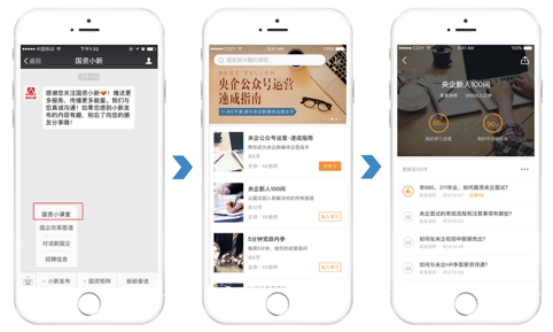“國資小新”上線五年來,基于對粉絲需求的深度了解,先后設(shè)立了“微招聘”、“畢業(yè)去哪兒”、“新思”、“小新薦書”等欄目,并嘗試語音知識分享,為包括國企員工在內(nèi)的廣大粉絲提供招聘求職信息、分享企業(yè)管理經(jīng)驗、解讀國企改革發(fā)展的政策和形式,幫助粉絲實現(xiàn)更好的職業(yè)規(guī)劃和發(fā)展。近期推出的“小新微課”,是“國資小新”結(jié)合最新技術(shù)手段、在這一領(lǐng)域的又一嘗試,課程免費(fèi),立足公益,為粉絲竭誠服務(wù),旨在提供更具權(quán)威性、普遍性、專業(yè)性的職業(yè)發(fā)展服務(wù)。