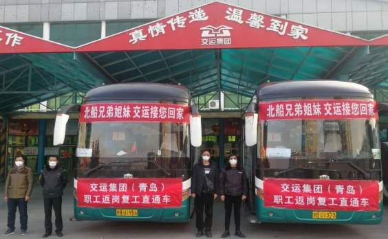 ?點(diǎn)對(duì)點(diǎn)包車接承包商職工返廠(孫杰 攝)
