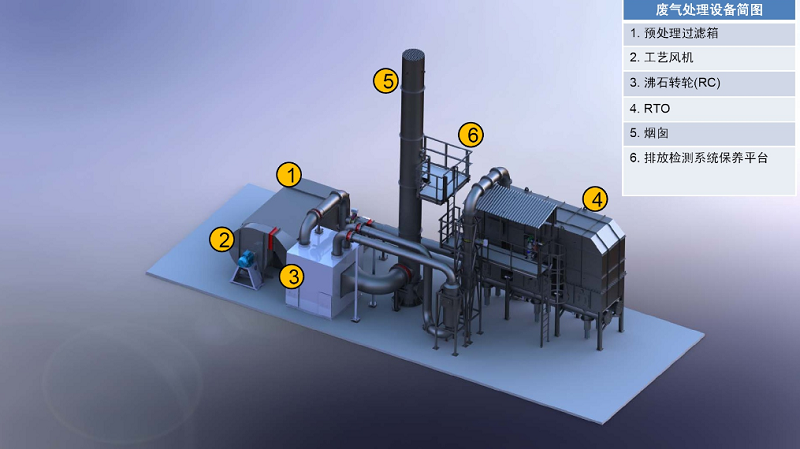 ????“多轉(zhuǎn)輪+RTO”處理工藝:兩套或多套沸石轉(zhuǎn)輪作為吸附濃縮裝置,1臺RTO(蓄熱式氧化爐,具備一定蓄熱能力的燃燒爐,通過高溫氧化的方式將氣體中的可燃物質(zhì)進(jìn)行氧化,達(dá)到使氣體凈化的目的)作為燃燒凈化裝置的VOCs處理工藝。