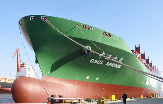 2014年1月8日,我國完全自主研發(fā)、自行設(shè)計、自行建造的第一艘10000TEU超大型集裝箱船“中海之春”號在大船集團交付?!爸泻V骸碧柕慕桓叮粌H實現(xiàn)了國內(nèi)建造超大型集裝箱船又一次新的飛躍,而且使我國成為繼韓國、日本之后,能夠自主研發(fā)、自主設(shè)計、自主建造同型超大型集裝箱船的國家。