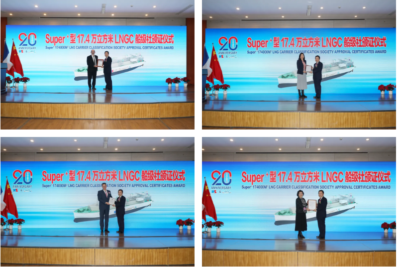 12月16日,由中國船舶集團旗下滬東中華與法國GTT公司聯(lián)合研發(fā)的全球最新一代“長恒系列”17.4萬立方米液化天然氣(LNG)運輸船獲得美國船級社(ABS)、法國船級社(BV)、英國勞氏船級社(LR)、DNV等四家國際著名船級社頒發(fā)的船型設計通用認可(GDA)、入級預先認可(PCA)等證書。標志著這款集最新設計理念、最優(yōu)技術裝備、最強環(huán)保性能、最具前瞻性于一身的“長恒系列”船型達到可以實船建造的狀態(tài)。這是世界LNG船發(fā)展史上的重大事件,更是中國在LNG船研發(fā)設計領域從跟跑、并跑到領跑進程中一座重要的里程碑。