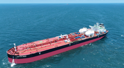 外高橋造船建造的10.9萬載重噸阿芙拉型雙燃料成品油船“普羅透斯?伊沃娜”號,交付。