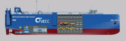 3600車汽車運輸船是江南造船建造采用浮船塢下水的全球第一批“LNG雙燃料+電池混合動力+智慧能源管理系統(tǒng)”的汽車運輸船。該型船涵蓋如雙燃料+電池混合動力及EMS能源管控系統(tǒng)等世界一流的所有滾裝船技術(shù)和系統(tǒng)。
