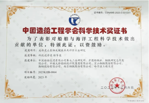 近日,中國造船工程學(xué)會(huì)發(fā)布了2023年科學(xué)技術(shù)獎(jiǎng)評(píng)審結(jié)果,中國船舶集團(tuán)七二五所申報(bào)的“高強(qiáng)度止裂鋼關(guān)鍵技術(shù)及評(píng)價(jià)方法研究”榮獲科技進(jìn)步獎(jiǎng)特等獎(jiǎng)。項(xiàng)目團(tuán)隊(duì)歷經(jīng)十余年技術(shù)攻關(guān),在國際上首次提出了止裂性能大尺寸雙重拉伸試驗(yàn)方法和小尺寸替代試驗(yàn)方法,并成功將其納入國際船級(jí)社協(xié)會(huì)(IACS)通用規(guī)范,極大提升了我國在該領(lǐng)域的國際話語權(quán)和技術(shù)影響力。