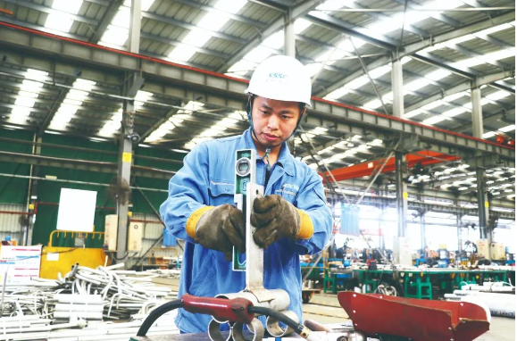 安排完一天的工作計(jì)劃后,中國(guó)船舶集團(tuán)有限公司旗下廣船國(guó)際龍穴管業(yè)加工部有色管工段班長(zhǎng)李秋斌開(kāi)始對(duì)一段管子進(jìn)行加工。