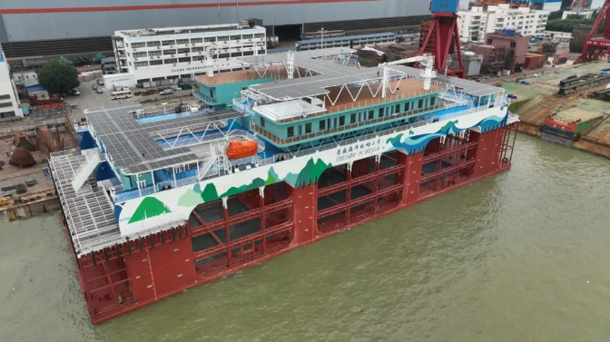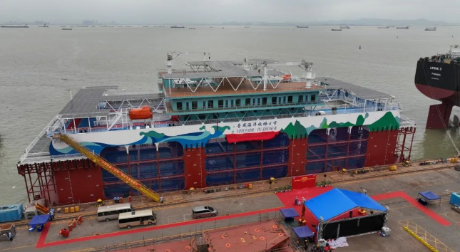 中國(guó)船舶集團(tuán)旗下廣船國(guó)際建造的半潛式深遠(yuǎn)海智能養(yǎng)殖旅游平臺(tái)“普盛海洋牧場(chǎng)6號(hào)”命名交付。