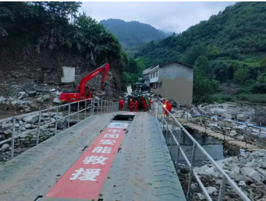 四川省公路交通應(yīng)急裝備物資儲(chǔ)備中心在現(xiàn)場道路損毀處架設(shè)了一座21米應(yīng)急機(jī)械化橋,有效保障救援人員和重型設(shè)備通行。架設(shè)前,中船應(yīng)急和四川省公路交通應(yīng)急裝備物資儲(chǔ)備中心進(jìn)行了工作對接并提供技術(shù)支持。