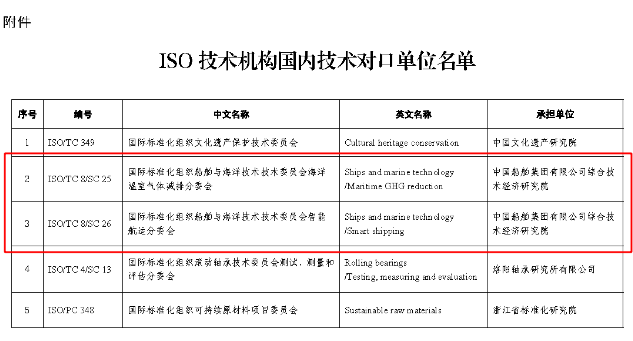 由中船綜合院承擔(dān)2個(gè)國際標(biāo)準(zhǔn)化組織(ISO)技術(shù)機(jī)構(gòu)國內(nèi)技術(shù)對口單位,分別是: