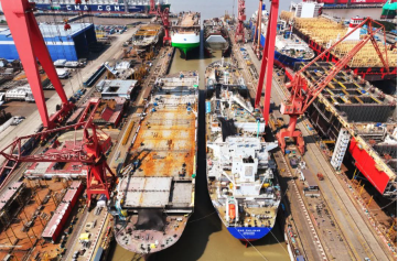 8月11日,中國(guó)船舶集團(tuán)旗下江南造船4號(hào)船塢迎來(lái)一艘99000立方米超大型乙烷乙烯運(yùn)輸船(VLEC)和一艘7800車位汽車運(yùn)輸船(PCTC)出塢 ,一艘99000立方米VLEC半船和一艘7800車位PCTC半船同步起浮,達(dá)成了“PV同步”建造模式的首批次出塢。