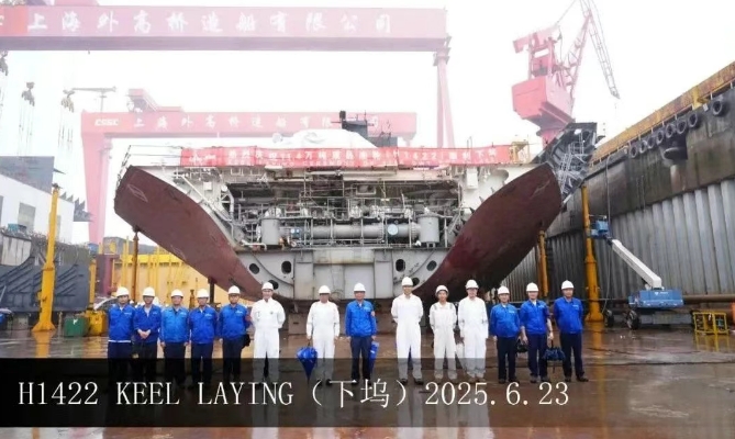 6月23日,外高橋造船建造的11.4萬(wàn)噸阿芙拉型成品油船H1422船順利下塢。