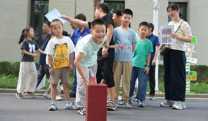 在講解員引導(dǎo)下,家屬們先后走進(jìn)七二五所所部科技展廳與第六研究室,系統(tǒng)了解研究所六十余載發(fā)展歷程、研究領(lǐng)域、前沿技術(shù)攻關(guān)。從國家科技進(jìn)步獎獲獎項目到“大國重器”關(guān)鍵材料突破,家屬們深刻感受到“艱苦創(chuàng)業(yè)、勇攀高峰”的奮斗者文化傳承。在親子活動區(qū),“趣味投壺”“瘋狂九宮格射門”“百步穿楊”“急速投籃”等4項趣味游戲,瞬間點燃了職工與家屬們的參與熱情,大家紛紛組隊,積極投入到游戲中,通過趣味互動,進(jìn)一步加深彼此間的理解與默契,情感也在歡聲笑語中得到了升華。