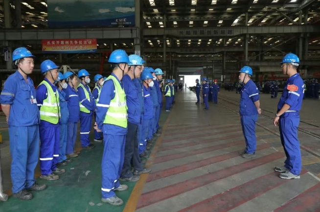 廣船國際按照“五步法”認真組織開展班前會,組織開展班前會安全交底比賽,建立10個“優(yōu)秀班前會”班組,每周組織班前會觀摩學(xué)習(xí),將“優(yōu)秀班前會”進行推廣。
