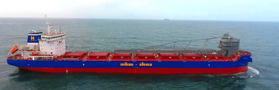 該船船長190米,型寬29米,設計吃水10.5米,全船配置先進,配備單機可調槳CPP、抱軸式軸帶發(fā)電機、大功率艏艉側推、貝克舵、混合式脫硫系統(tǒng)和一套具有5500噸/小時卸貨能力的高效自卸系統(tǒng)。