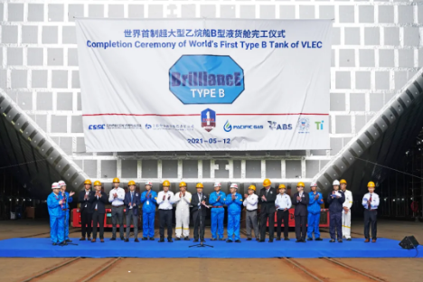5月12日,中國船舶集團旗下江南造船舉行了世界首制99000立方米超大型液化乙烷運輸船 (VLEC) 首個B型液貨艙完工儀式,標志江南造船99000立方米VLEC建造實現關鍵技術突破,其自主研發(fā)的“BrilliancE?”貨物圍護系統(tǒng)實現工程化和節(jié)拍化生產。