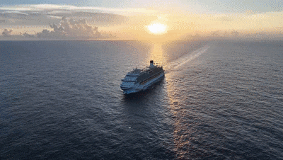 愛(ài)達(dá)·魔都號(hào)在大海上畫(huà)“∞”。