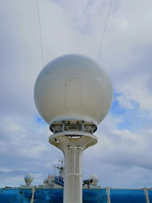 站在煙囪下面往船艏方向看,正對(duì)著1個(gè)大球,前前后后,愛(ài)達(dá)·魔都號(hào)的頂部共有5個(gè)同款大球,它們分別用于收發(fā)來(lái)自衛(wèi)星的電視和網(wǎng)絡(luò)信號(hào),船上“5G+WIFI”網(wǎng)絡(luò)系統(tǒng)和艙室的IPTV就是在它們的加持下才得以實(shí)現(xiàn)。