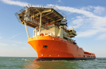 該船型由挪威著名的設(shè)計(jì)公司Salt Ship Design設(shè)計(jì),總長100米,型寬23米,配備4臺柴油發(fā)電機(jī)組驅(qū)動的電力推進(jìn)系統(tǒng),2套艉部全回轉(zhuǎn)推進(jìn)器、1套艏部伸縮推進(jìn)器、2套艏部側(cè)向推進(jìn)器,以及1套1500千瓦時(shí)的儲能蓄電池系統(tǒng)。船上還配備1臺150噸帶主動波浪補(bǔ)償功能的海工吊,可以在復(fù)雜的海況下完成最大3000米水深的海上作業(yè)。