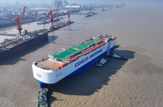 12月2日,外高橋造船1號船塢迎來8600車液化天然氣(LNG)雙燃料動力汽車運輸船(PCTC)和11.4萬噸阿芙拉型成品油輪的同日出塢,不僅達成首制PCTC船塢周期100天既定目標,在民船建造領(lǐng)域繼續(xù)保持“加速度”,而且也標志著該公司新船型和常規(guī)船型同塢同節(jié)拍生產(chǎn)取得新突破。