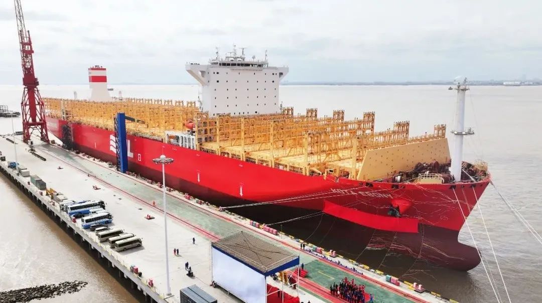 近日,中船集團(tuán)旗下江南造船為太平船務(wù)建造的14000TEU液化天然氣(LNG)雙燃料動力集裝箱船系列船3號船“KOTA Ebony(檀城)”號命名交付。