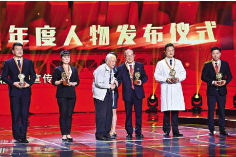 當(dāng)主持人念出“給‘人民英雄’張定宇頒獎(jiǎng)的是‘共和國勛章’獲得者黃旭華”時(shí),臺(tái)下爆發(fā)出熱烈的掌聲。