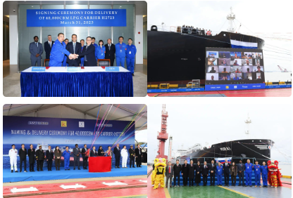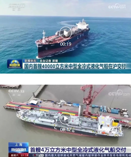3月31日,中國船舶集團(tuán)旗下江南造船聯(lián)合中船貿(mào)易為日本KUMIAI公司建造的40000立方米中型全冷式液化氣船(MGC)“MIRAI”號順利交付,中央電視臺《新聞聯(lián)播》 《新聞直播間》對此進(jìn)行了報道。